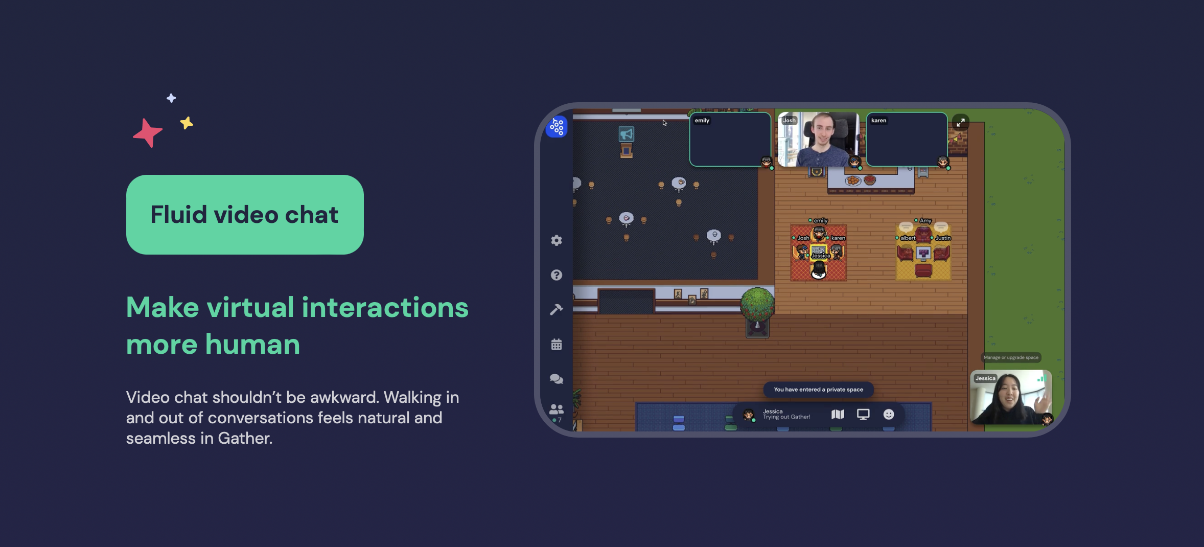 Gather.town is a new favourite of ours as gives you an avatar which you can move around a virtual space and talk to different people. This would be fantastic for hosting a little classroom of your child’s friends as it allows great breakout spaces and is a very organic experience.